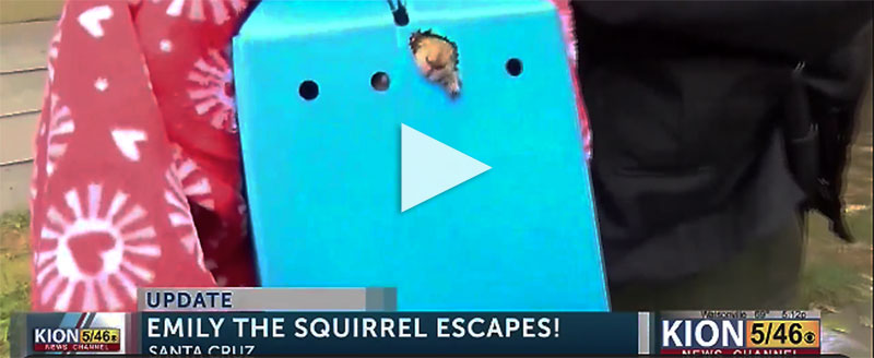 Cruzio, being nearby, has additional exclusive information and footage of this squirrel prior to her arrest and escape.