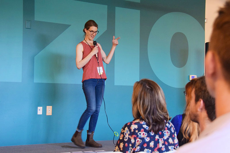 Using Cruzio’s open space and big teal wall to organize, twenty would-be entrepreneurs pitched ideas for startup businesses on Friday June 1st. On Sunday, two days later, nearly all of them exhibited a “proof of concept” showing how they could present their projects to potential investors.