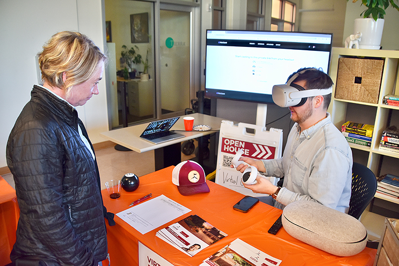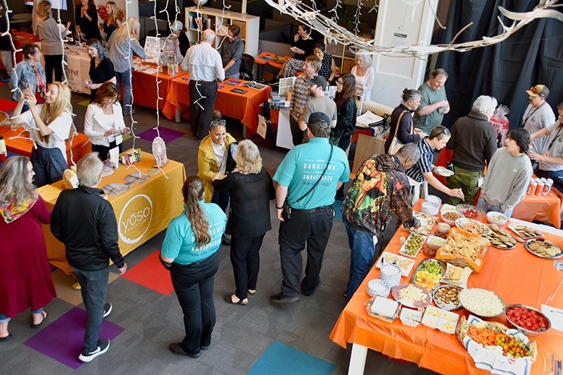 Partygoers enjoying the scene in Cruzioworks’s coworking atrium